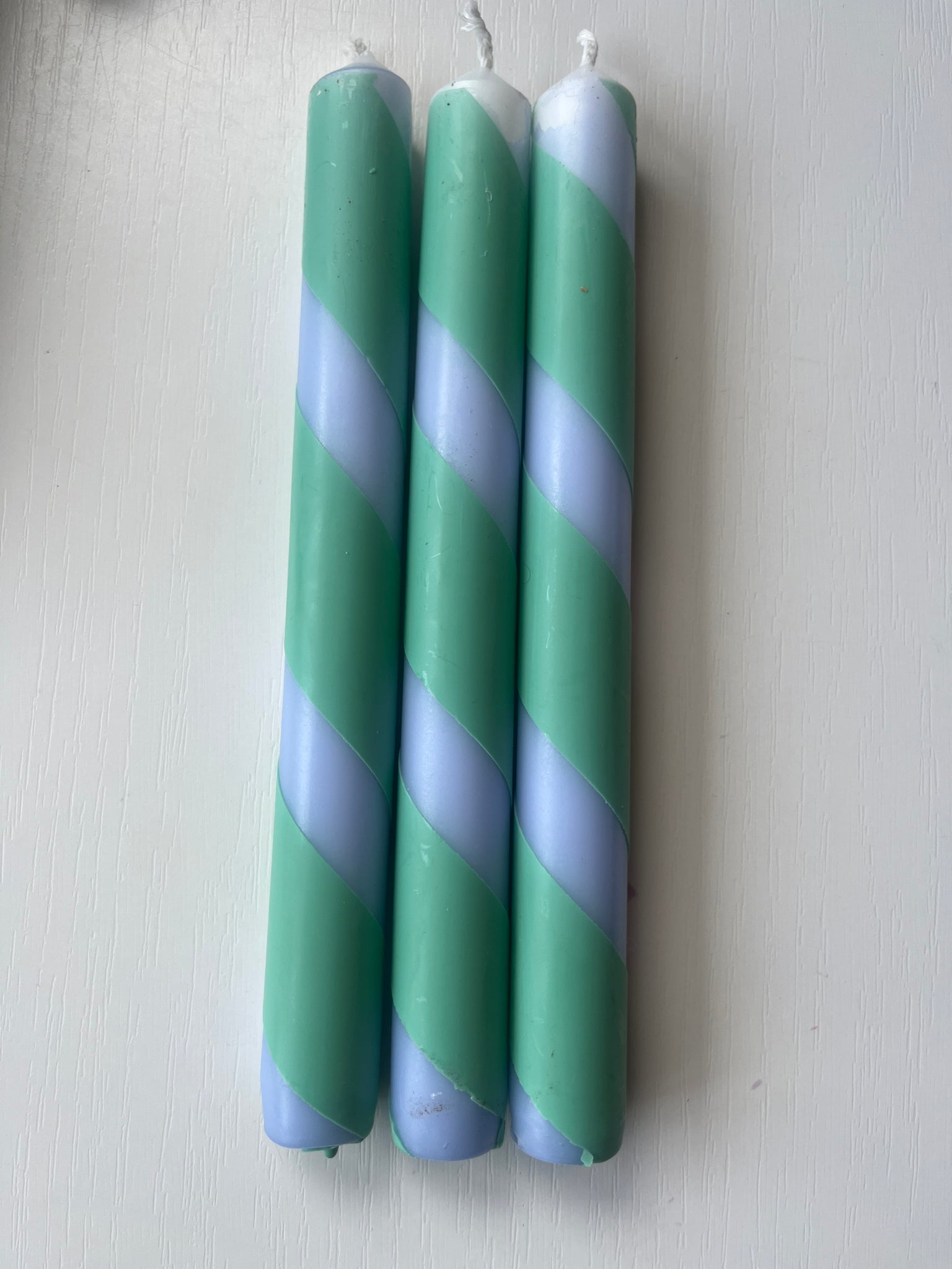 BLUE PINSTRIPES Dip Dye Dinner Candles Trio