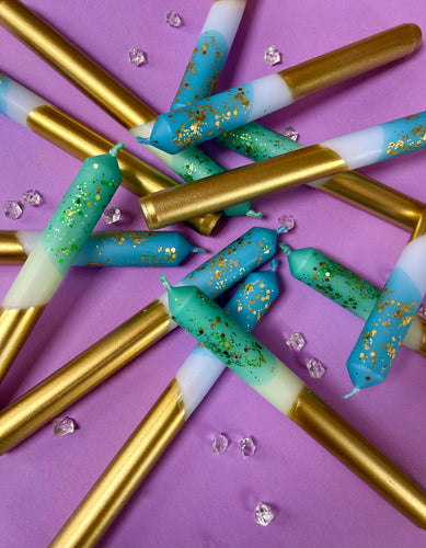 CRUSHED EMERALD AND DEEP ICE Dip Dye Dinner Candle Set